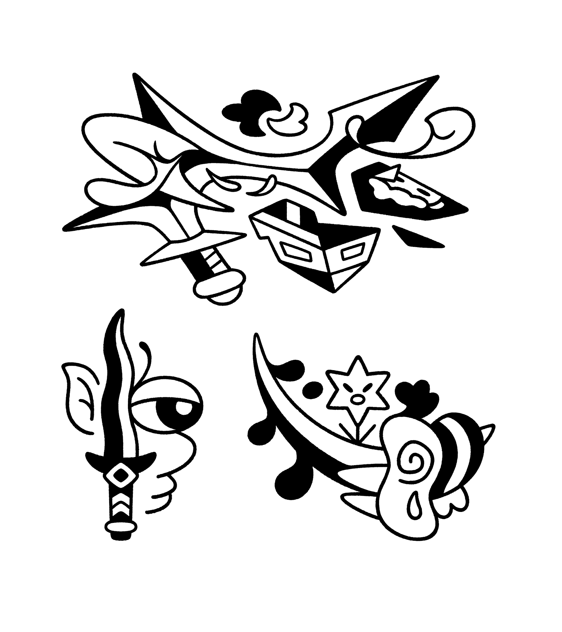 Each package contains 3 ready-for-print stencil outlines and a B&W digital print.